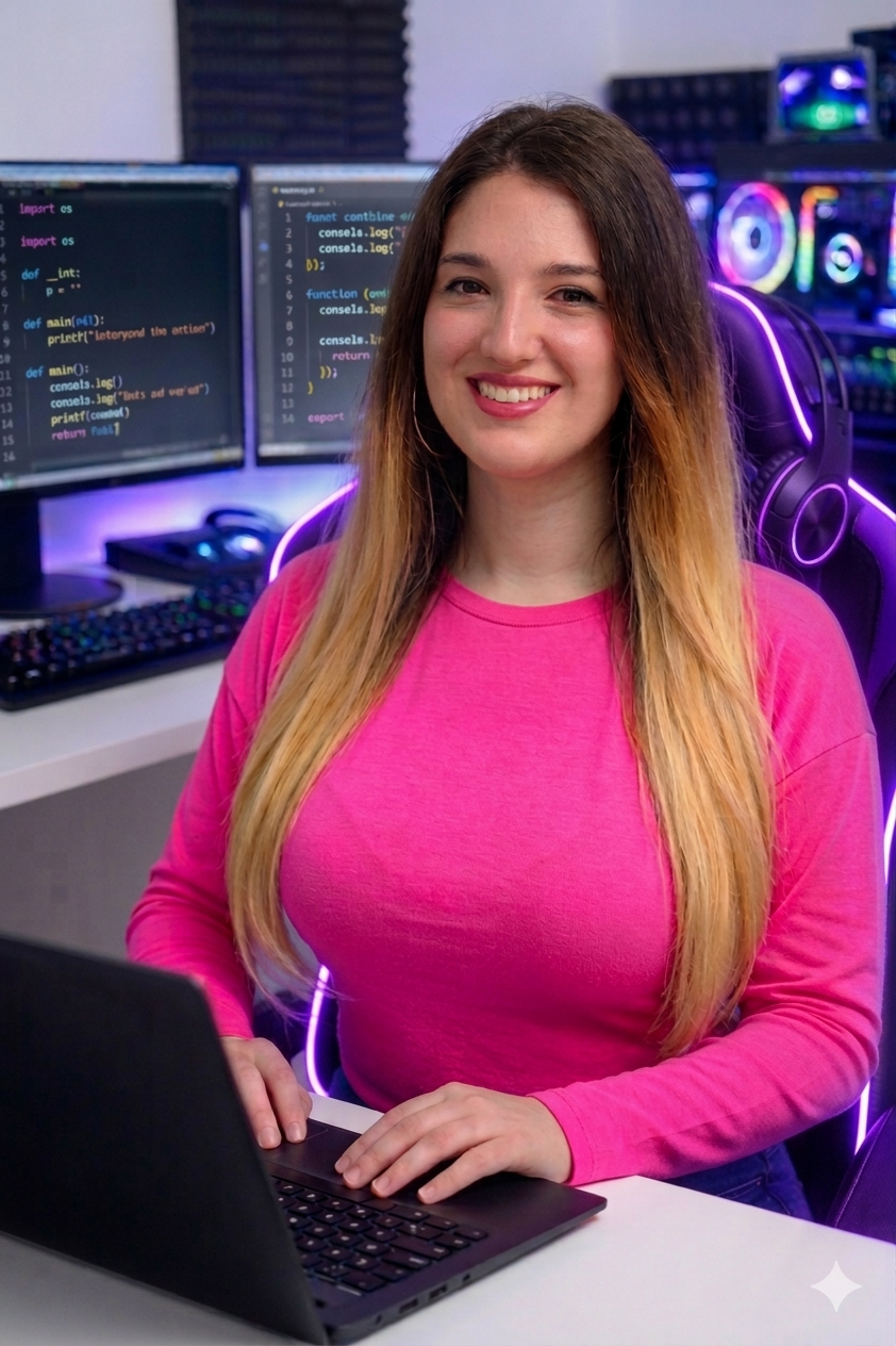 Soy una profesional APASIONADA por el desarrollo web, con una gran motivación que me ha acompañado desde siempre. Desde mis inicios he estado vinculada al mundo digital, creando proyectos y explorando nuevas tecnologías por iniciativa propia. Con el objetivo de consolidar y profesionalizar esta pasión, decidí formarme académicamente en el ámbito de la programación, obteniendo la titulación profesional en Desarrollo de Aplicaciones Web.